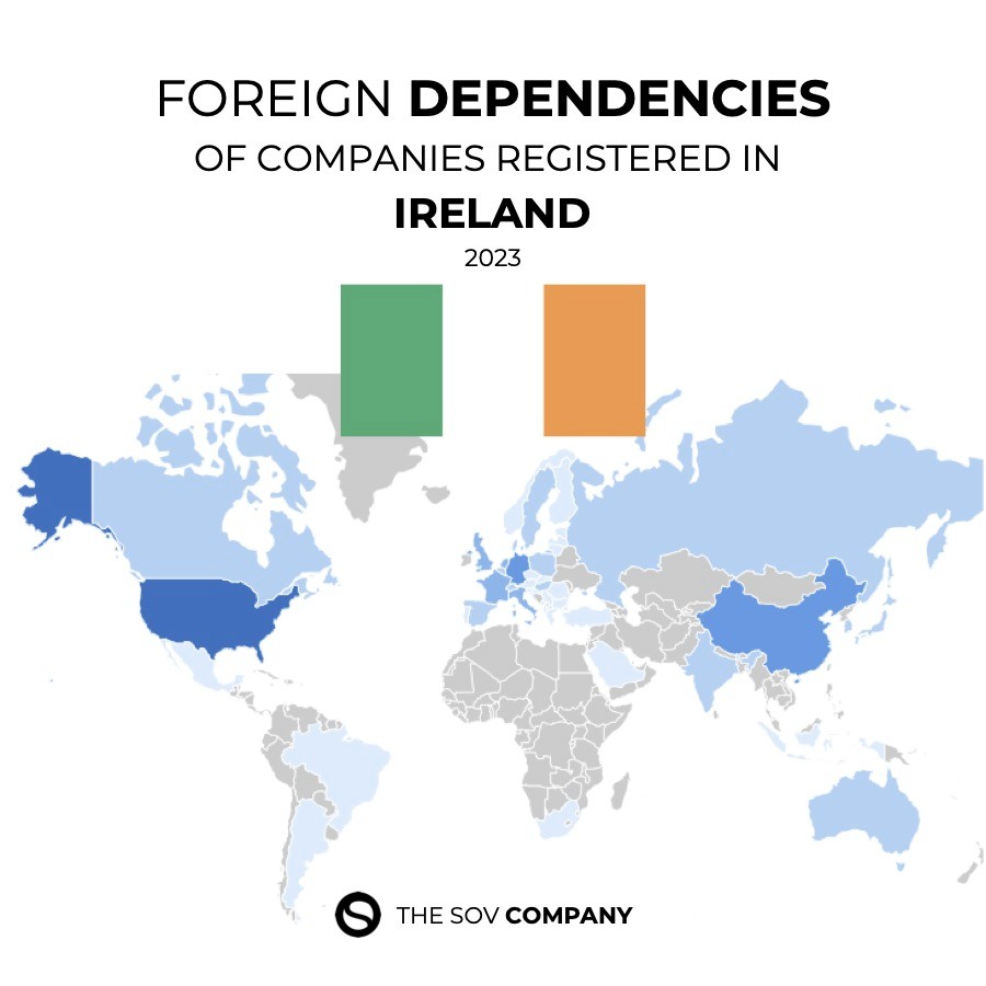I 2023, ghiniúin cuideachtaí cláraithe in Éirinn 526.5 billiún euro i ndíolacháin idirmheánacha. Tháinig 67.27 % den ioncam sin ó mhargaí eachtracha. I gcomparáid leis sin, is é 32.96 % meán-spleáchas eachtrach an AE. Ciallaíonn sé sin go bhfuil Éire 2.04 uair níos spleáiche ar éileamh eachtrach ná gnáth-geilleagar Eorpach.